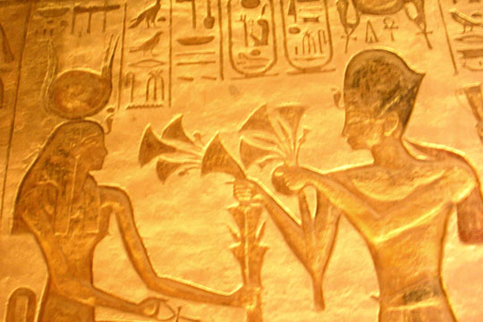 Chaque année, le 20 octobre, le soleil, à son lever pénétrait dans le sanctuaire et éclairait le visage de la statue d'Amon puis celui du roi. Le 20 février, les premiers rayons de l'astre touchaient la statue d'Horus puis celle du roi.