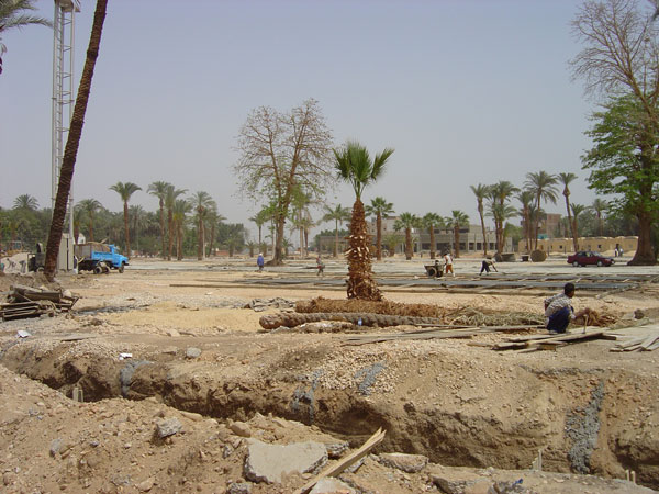 Les travaux de dégagement. A droite, l'emplacement du nouveau Luxor Heritage Center.